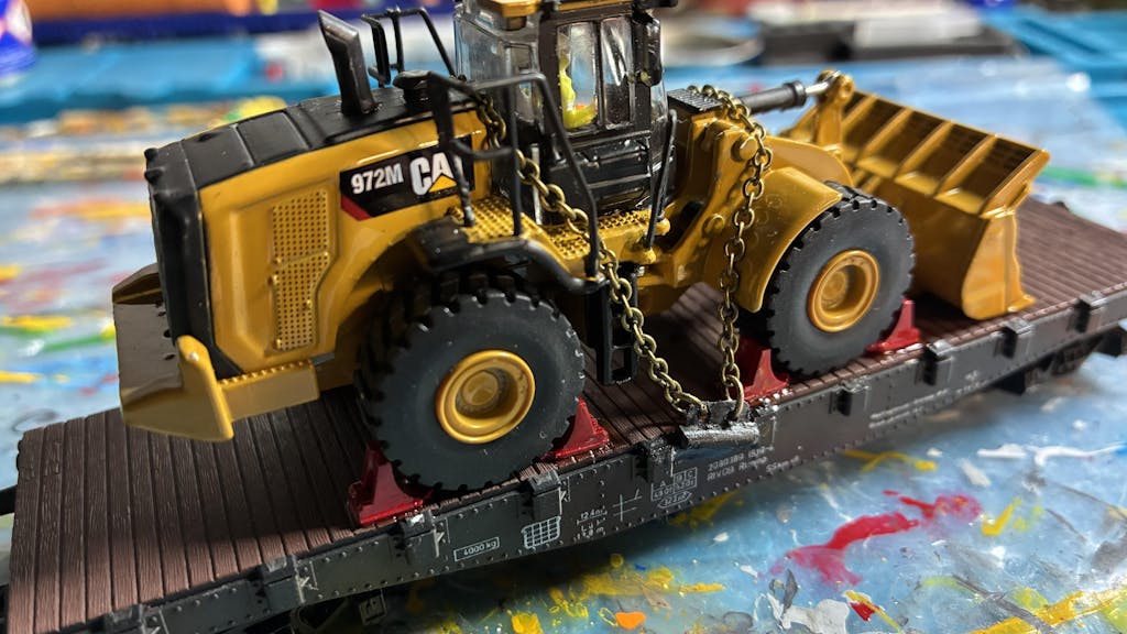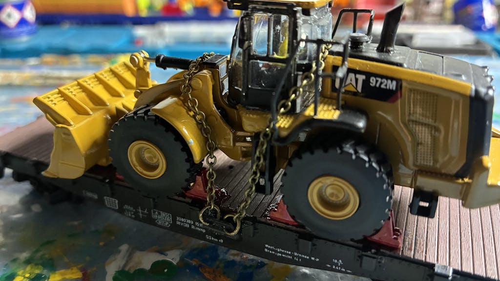 I'm very happy with these blocks. After painting them red, I used them to secure a piece of construction equipment to a Roco flat wagon. It looks absolutely perfect, as you can see in the photos.