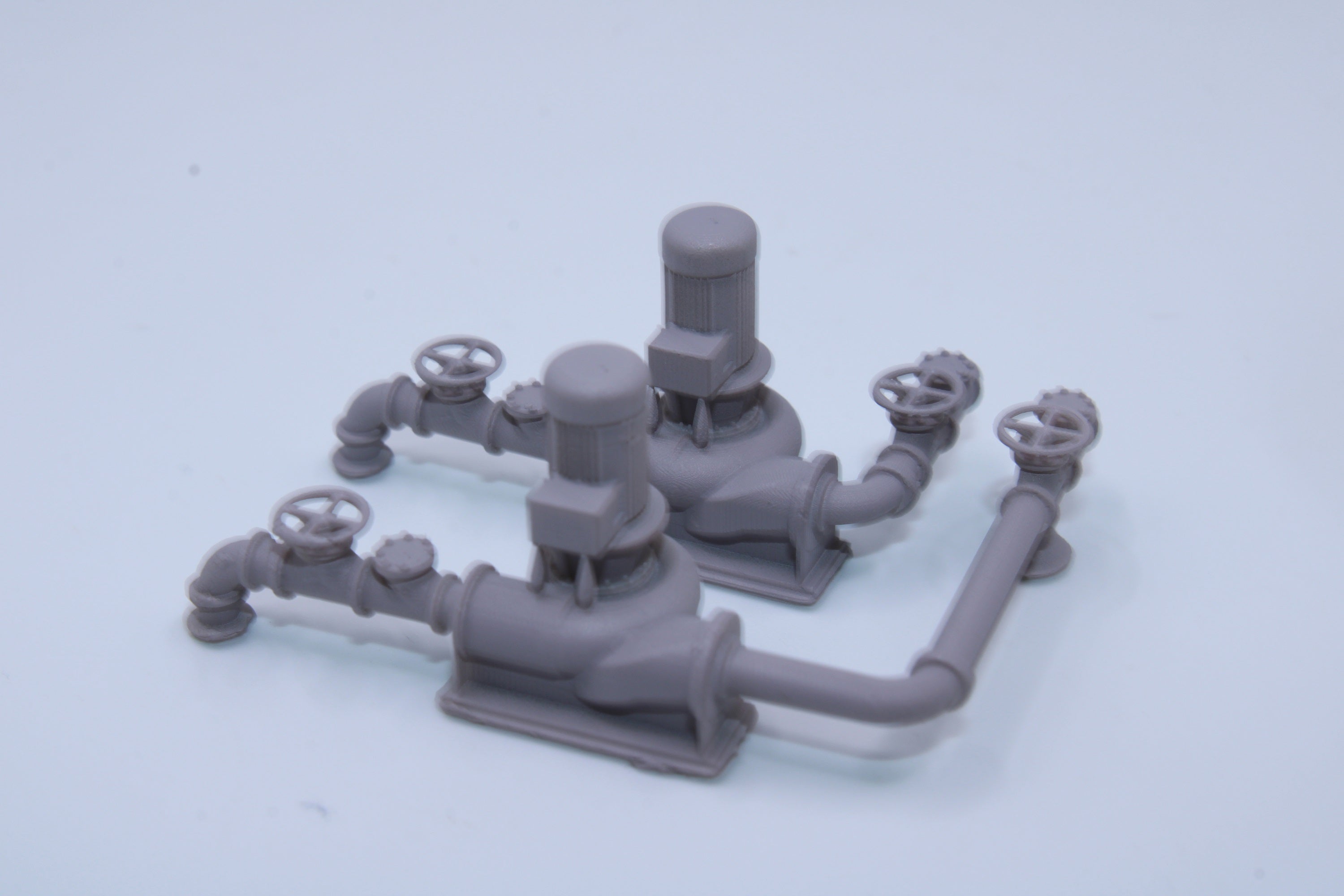 Realistic design – detailed pumps with connecting pipes, valve wheels, and fittings for an authentic look.