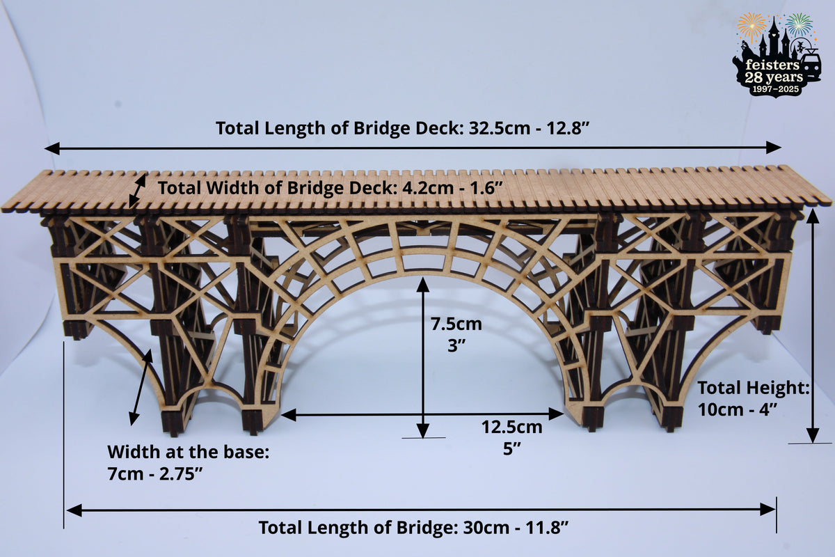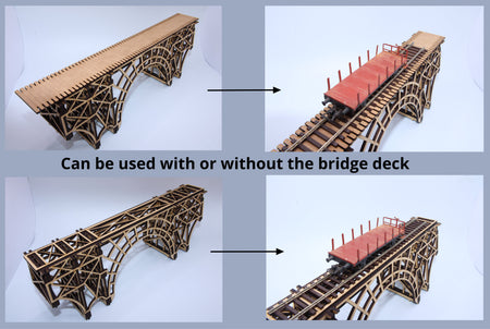 Inspired by classic trestle and arch bridge designs, this model is ideal for model train layouts, architectural displays, dioramas, and hobby projects.