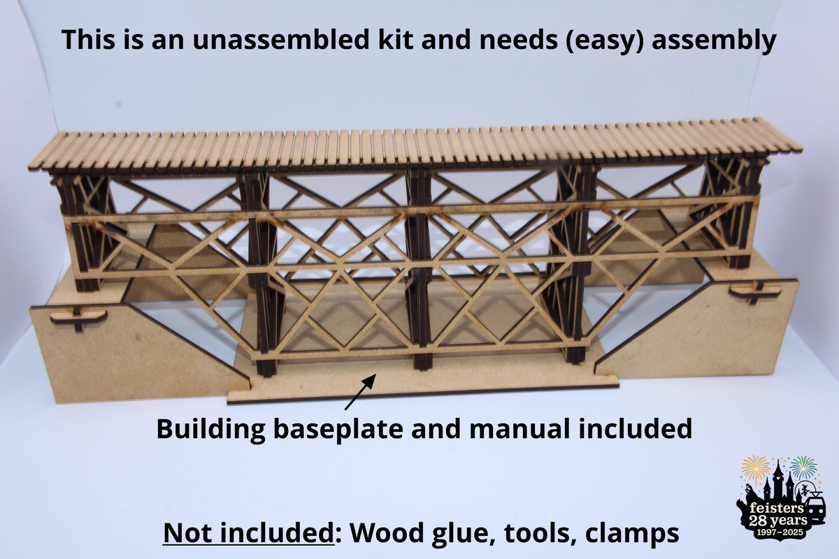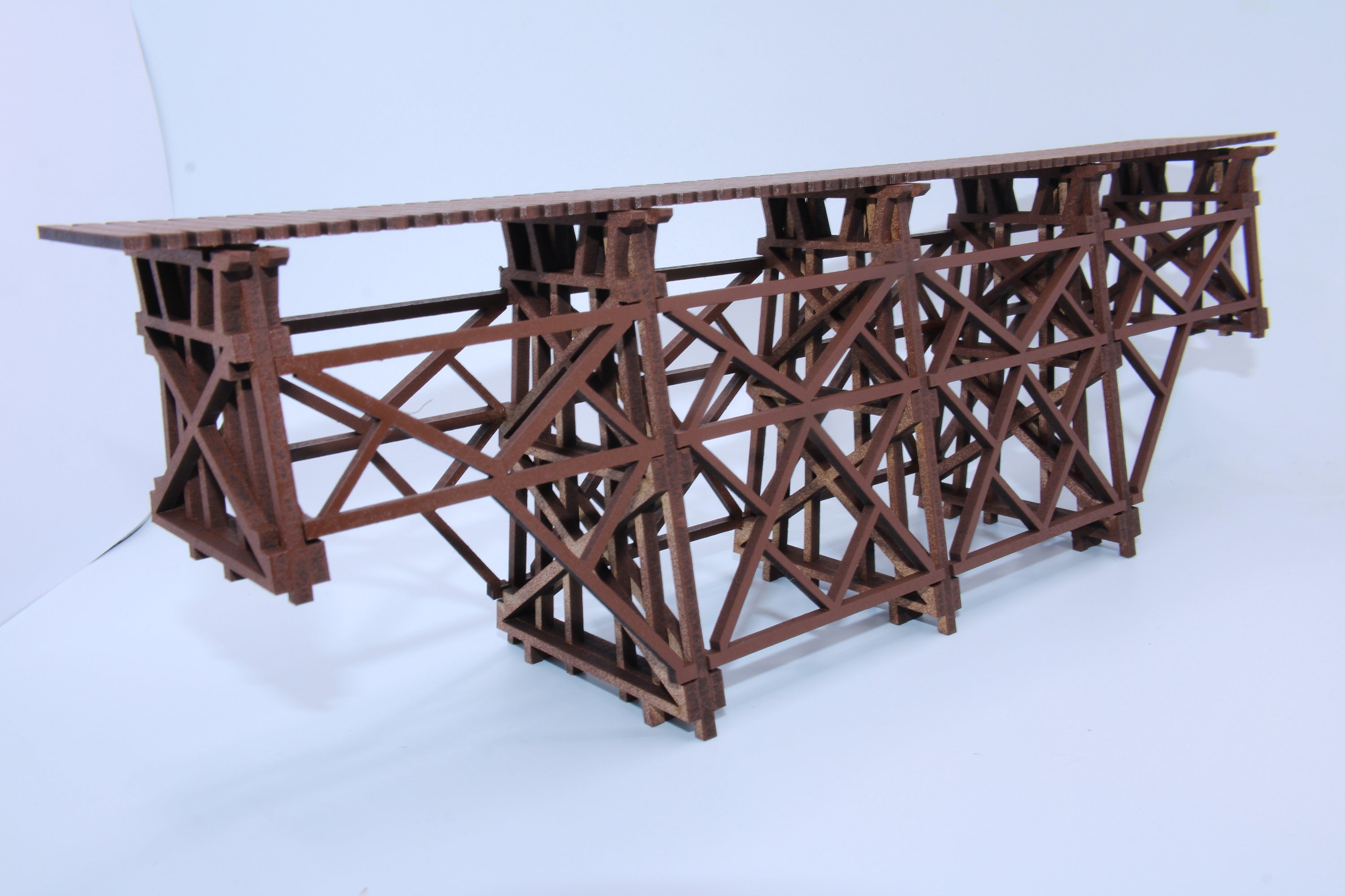 Inspired by classic trestle bridge designs, this model is ideal for model train layouts, architectural displays, dioramas, and hobby projects.