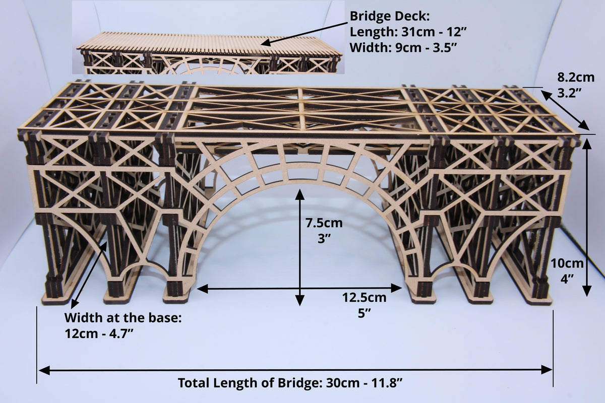 Inspired by classic trestle and arch bridge designs, this model is ideal for model train layouts, architectural displays, dioramas, and hobby projects.