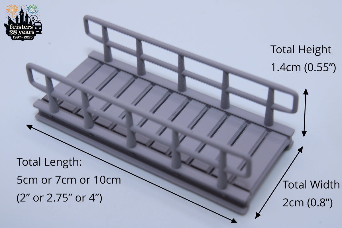 Add realistic detail to your miniature world with this 3D-printed pedestrian bridge, designed for model railways, dioramas, and tabletop displays.