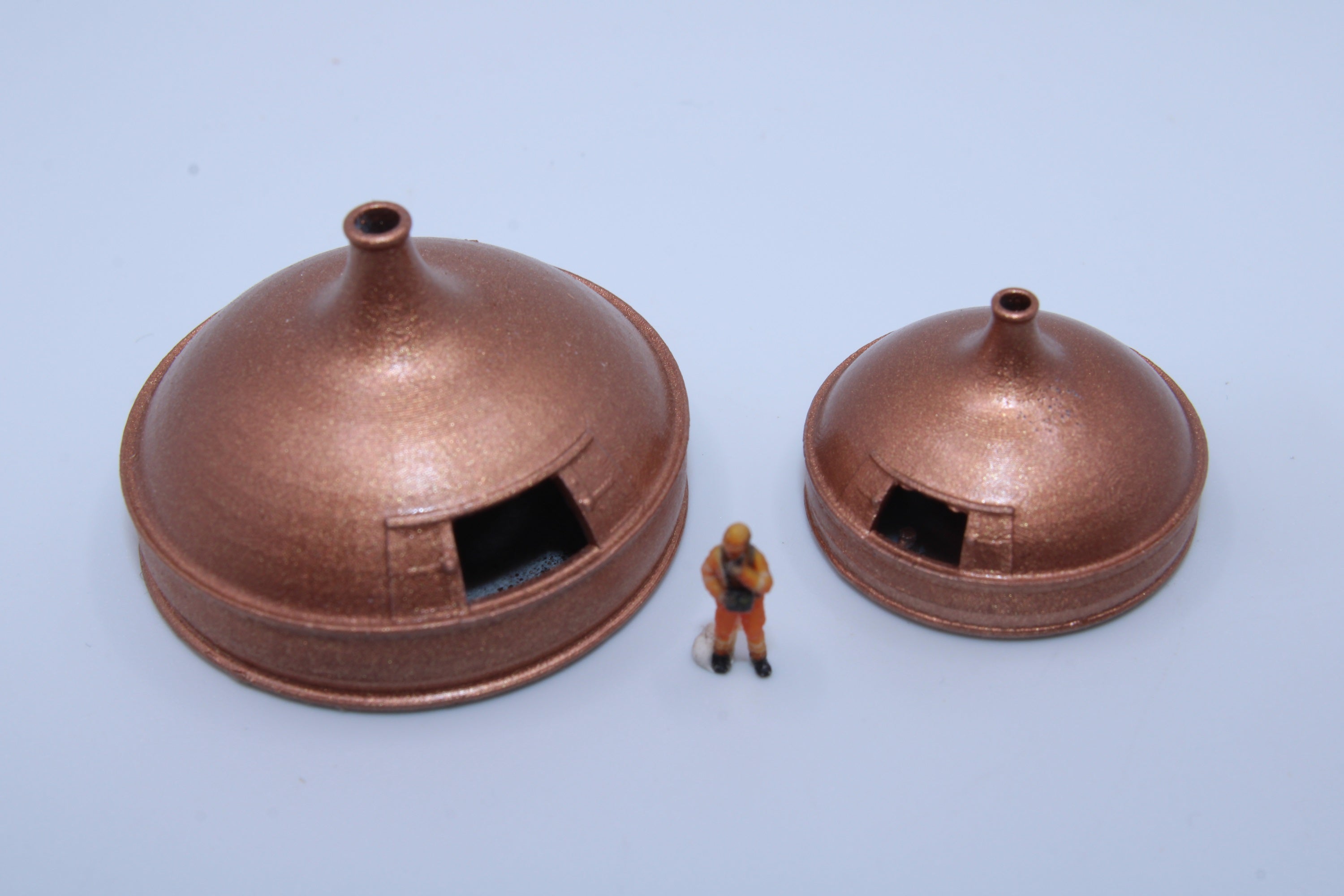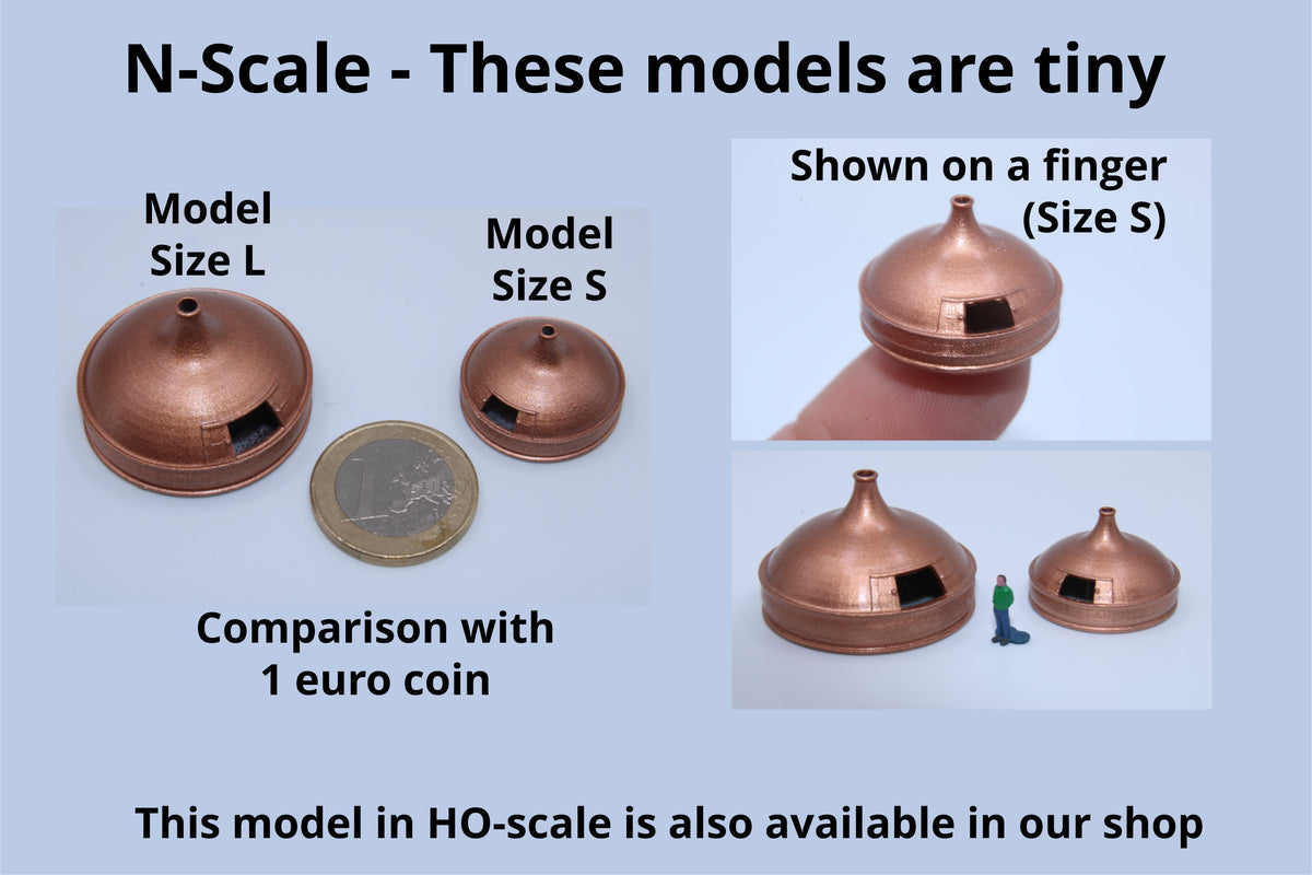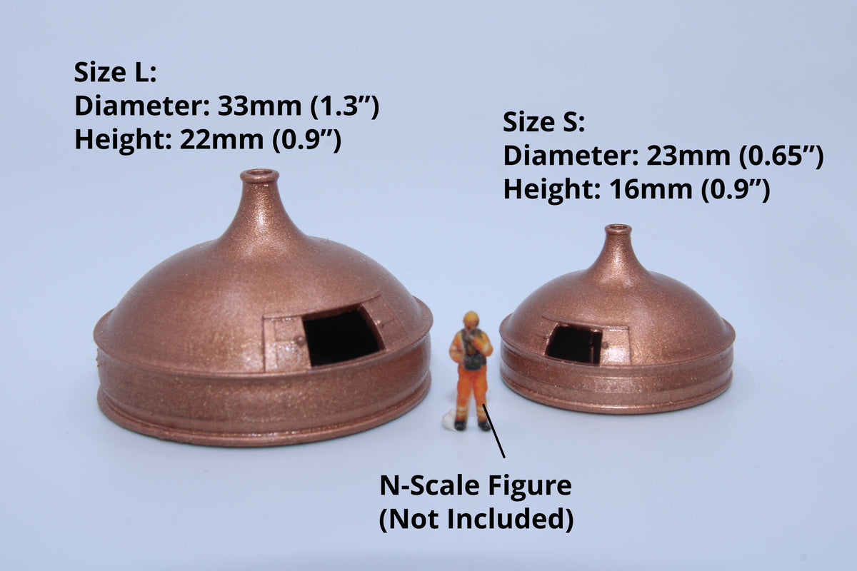 Add realistic industrial detail to your N scale brewery, distillery, or factory scene with these finely detailed brew kettles.