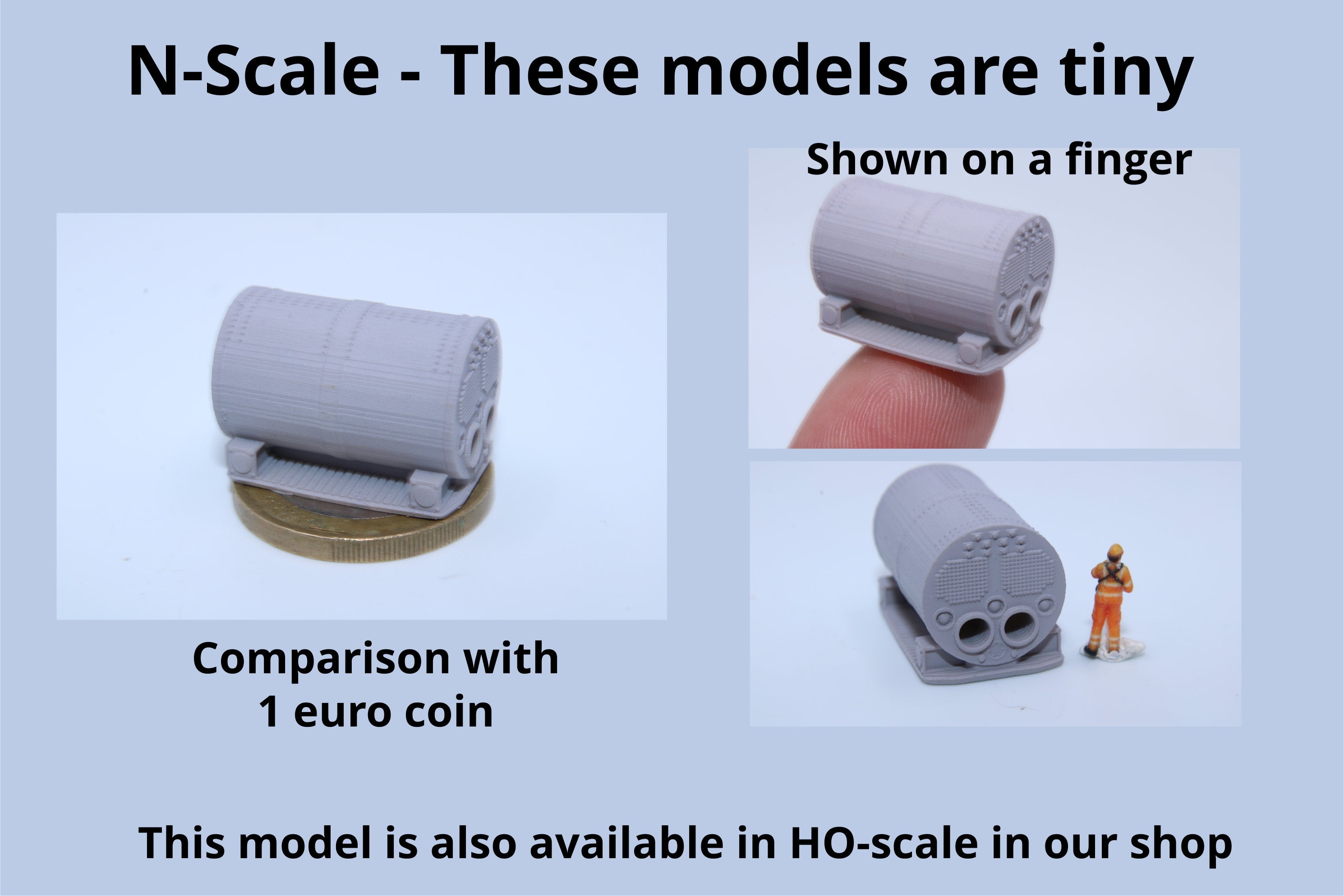 Add realistic heavy-industry detail to your N scale (1:160) model railroad or diorama with this industrial steam boiler set.