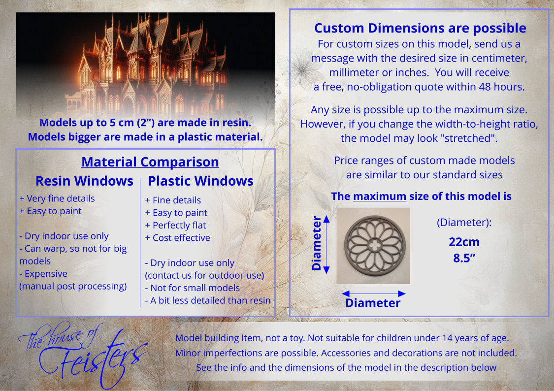 Add a touch of timeless charm to your miniature world with this round Gothic church window featuring a double arch design! Whether you're building a cozy dollhouse, a detailed railway scene, a fantasy tavern, or an epic gaming terrain – this classic window is ready to elevate your creation.
